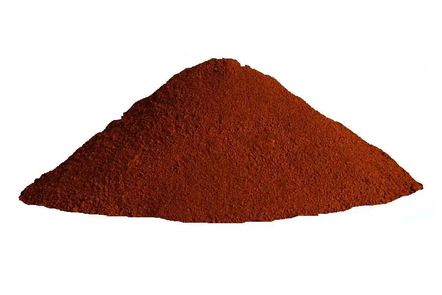 性 状:深红色粉末,耐酸、耐碱、耐光、耐热,化学稳定性好,有一些着色力和遮盖力。